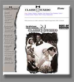 www.classictuxedo.com Designed site from scratch including custom nav bars, buttons and header artwork, site structure, layouts, forms, copy & content |
